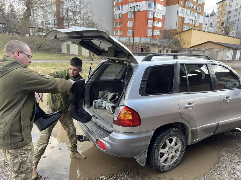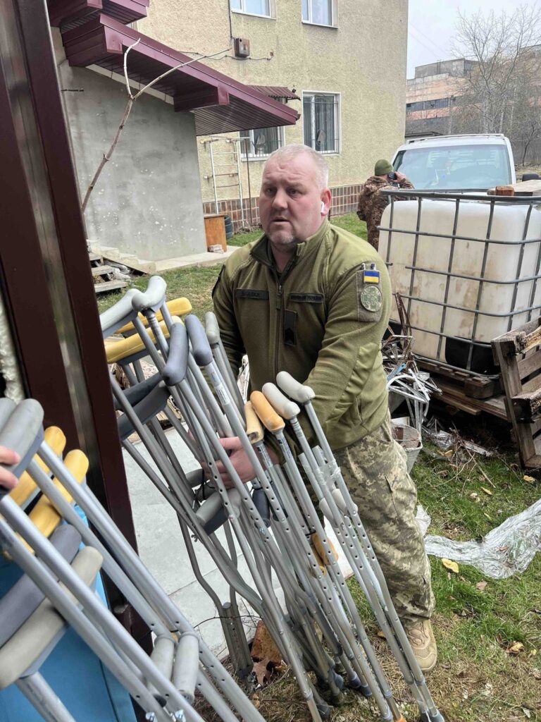 Також передані ортези , милиці , підйомник ,підвісний гамак , еластичні бинти , ентеральне харчування , медична дрель з комплектуючими , мат гімнастичний в Івано-Франківський Військовий Госпіталь. Всі ці засоби для військового шпиталю є незамінними для забезпечення медичного обслуговування військових, наших Захисників.